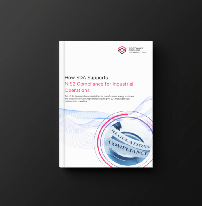 Software Defined Automation (SDA) delivers native OT compliance without IT workarounds: automatic asset discovery, firmware/CVE monitoring, backups, access controls, and audit trails.